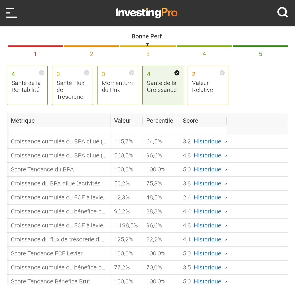 ✨ | La version “Pro” de Investing donne accès aux historiques financiers des 10 derniers exercices !