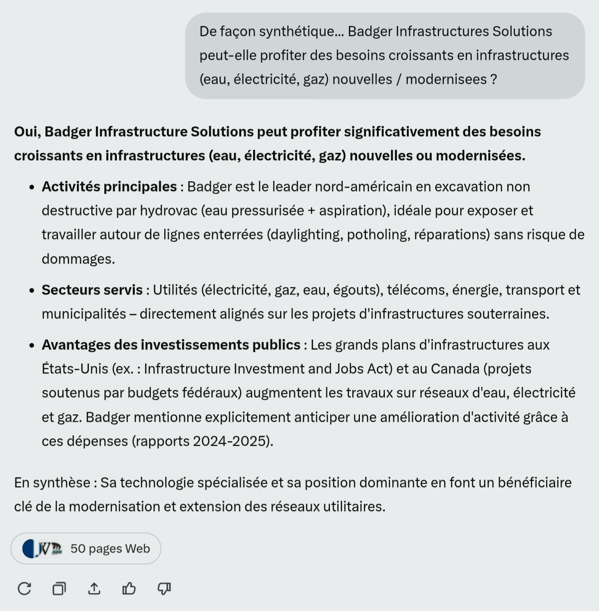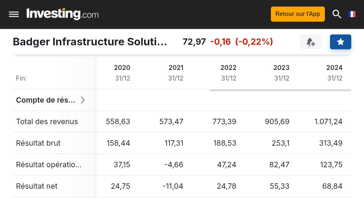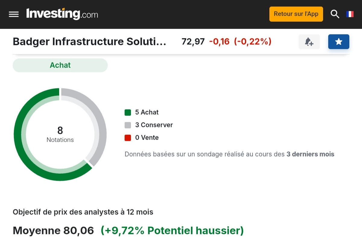 ⚠️ | Je ne possède pas Badger Infrastructure Solutions en portefeuille